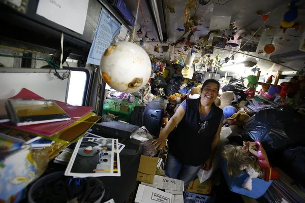 Outro coletivo em desuso foi doado à instituição, dessa vez, em definitivo. Para evitar os saques e o vandalismo, Lolô empreendeu uma engenhoca que, hoje, é a alma da associação: levantou paredes ao redor da carroceria, que parece resguardada no interior de uma garagem.