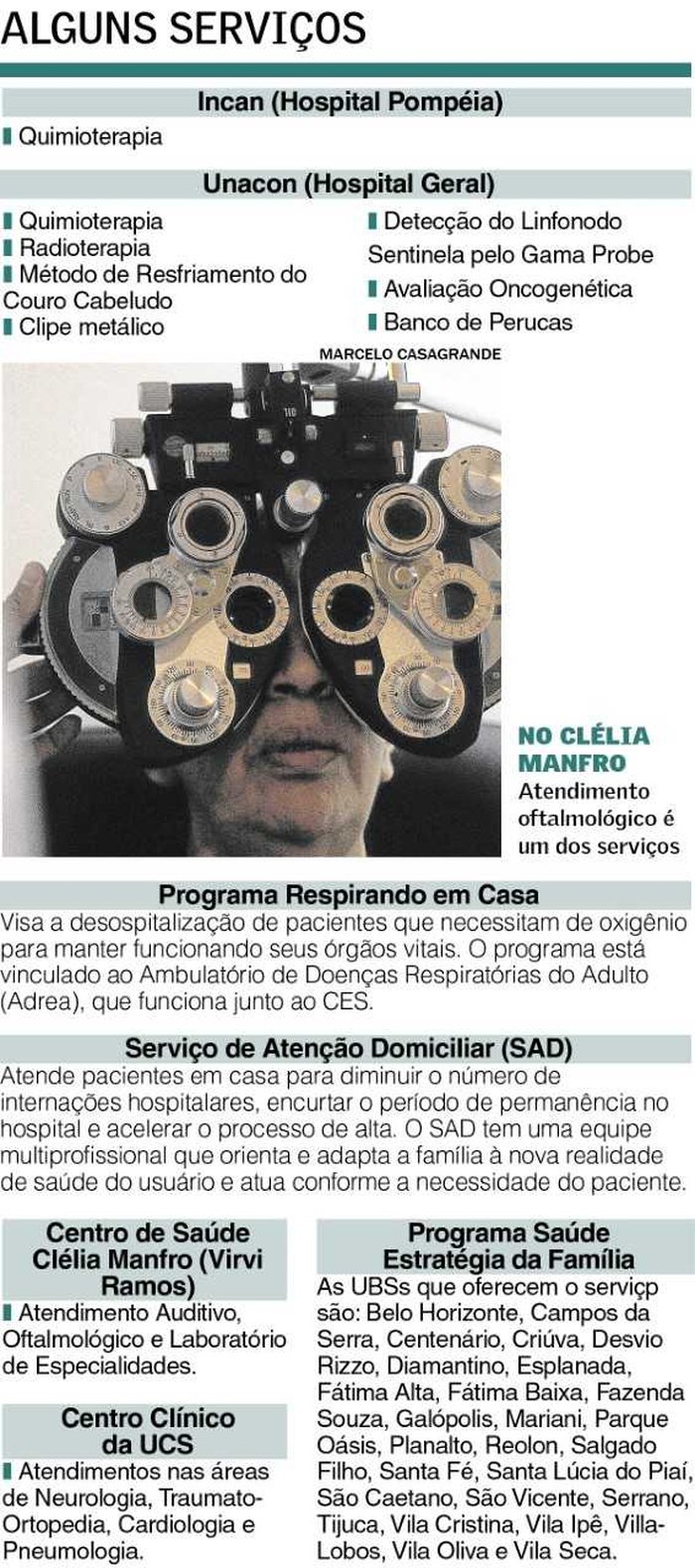 O Centro Clínico da Universidade de Caxias do Sul (UCS) – antiga Clínica de Fisioterapia – também atende a pacientes da rede pública nas áreas de traumato-ortopedia, cardiologia, neurologia e pneumologia. Os agendamentos são regulados pela Central de Marcação de Consultas de Caxias do Sul ou pelas secretarias de Saúde dos municípios da região.