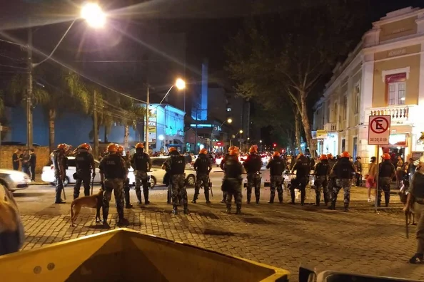 Um tumulto no entorno da Estação Férrea, no bairro São Pelegrino, precisou ser contido pela Brigada Militar (BM) entre o final da noite desta terça-feira (5) e início da madrugada desta quarta (6), em Caxias do Sul.