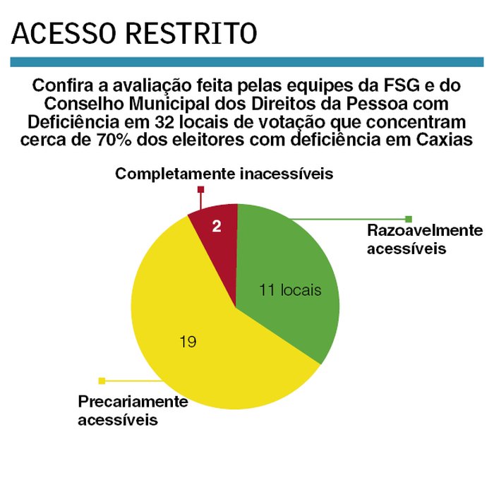 O relatório, produzido a partir do levantamento nos locais de votação em Caxias foi encaminhado ao Ministério Público Eleitoral (MPE) e à Justiça Eleitoral que, por não ter locais para dispor as urnas, faz um requerimento judicial dos prédios (sem pagamento) _ a maioria são escolas das redes municipal e estadual. A ideia era que fossem indicados locais acessíveis aos eleitores com deficiência da cidade. De acordo com o chefe de cartório da 169ª Zona Eleitoral, Edson Borowski, isso já é feito há anos. Segundo ele, desde 2008, há uma seção especial em cada um dos 165 locais de votação para atender a este público que tem prioridade.