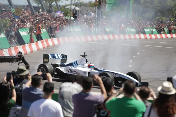 Após a primeira e a última voltas, o piloto fez questão de circular perto das grades, posando para fotos, autografando objetos e cumprimentando os fãs. Também aproximou-se do público junto com o tricampeão mundial Jackie Stewart, que acompanhou o evento na Capital e desfilou pela pista com uma bandeira do Brasil — o britânico ainda circulou pela área VIP, onde foi abordado para uma porção de selfies. Ao terminar sua última apresentação, Rubinho sambou em cima do capô do carro.
