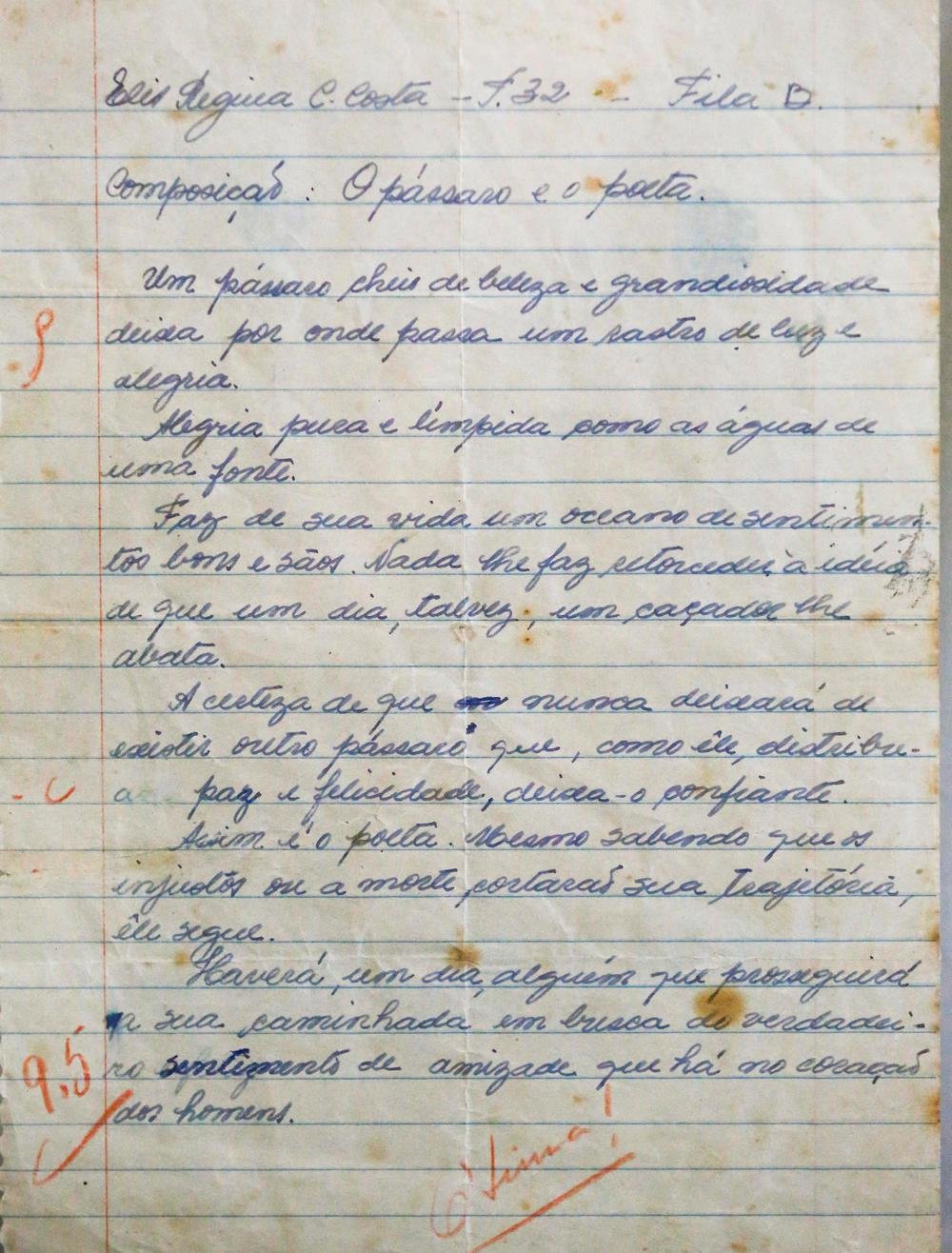 Alguns objetos dentro da sua casa também trazem uma enxurrada de memórias, como os discos e livros sobre Elis Regina. Tem também, emoldurada num quarto, uma redação escrita a mão pela Pimentinha, que ganhou nota 9,5. Marisa era o xodó da cantora, que cresceu três apartamentos depois do dela. Sete anos mais nova, acompanhou o começo da vida artística da vizinha.
