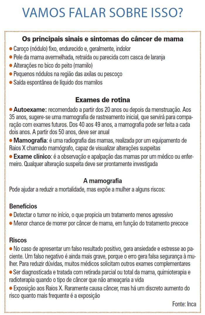 O Inca estima 57 mil casos novos de câncer de mama em 2016. O Sistema Único de Saúde (SUS) garante a oferta gratuita de exame de mamografia para as mulheres brasileiras em todas as faixas etárias, desde que exista recomendação médica. A faixa dos 50 aos 69 anos é definida como público prioritário para a realização do exame preventivo pela Organização Mundial de Saúde (OMS) e Ministério da Saúde baseado em estudos que comprovam maior incidência da doença e maior eficiência do exame.