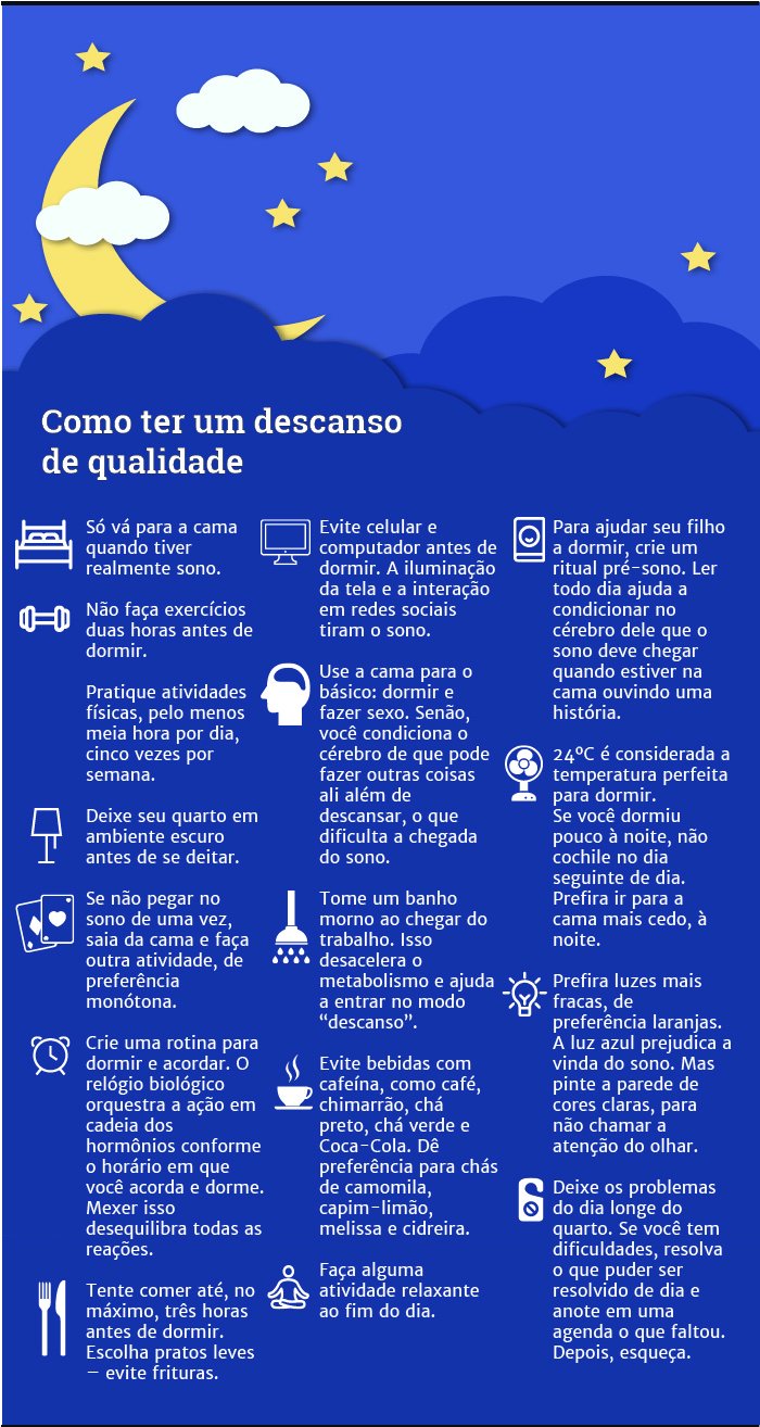 Experimente dormir pouquíssimo e ir ao trabalho. Cansaço, mau humor, desatenção, ansiedade e excesso de fome são alguns dos sintomas de uma noite de sono ruim. Agora, repita o processo durante semanas. O resultado é desastroso. Pouco descanso noturno de forma crônica promove um desequilíbrio em todo o organismo.